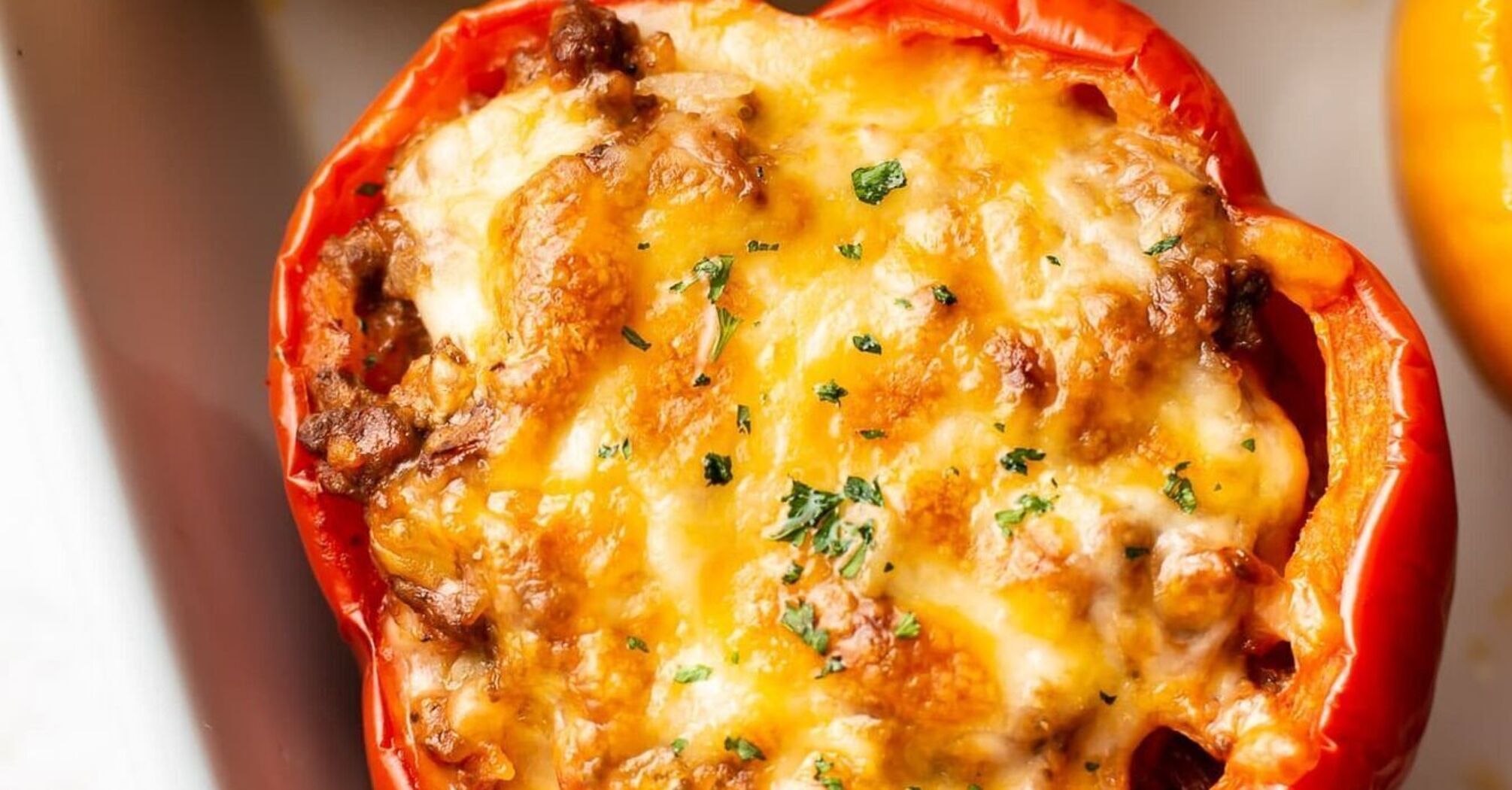 Papryka jest niezwykle soczysta i zdrowa. Dlatego powinny być aktywnie wykorzystywane do przygotowywania różnych potraw. Jeśli pokroisz je i usuniesz nasiona, otrzymasz świetną bazę, którą można nadziać różnymi pysznymi nadzieniami. Danie jest dość obfite i umiarkowanie kaloryczne.